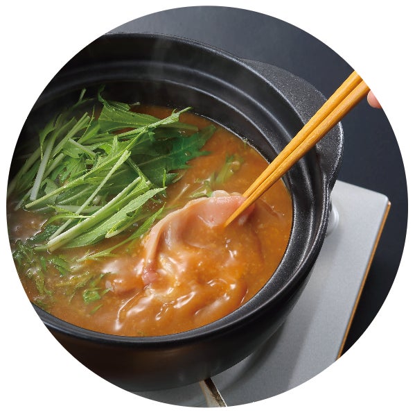あとは、つゆを鍋に注いで沸騰すれば、しゃぶしゃぶの始まりです。準備はとても簡単なのも良いところです。時短や楽をしたい時のおかず、おつまみに便利です。また、麹すきしゃぶのつゆは、常温保存で6ヶ月の保存期間がありますので、ストックしておけば、冷蔵庫に残った材料でも、ご馳走に変わります。